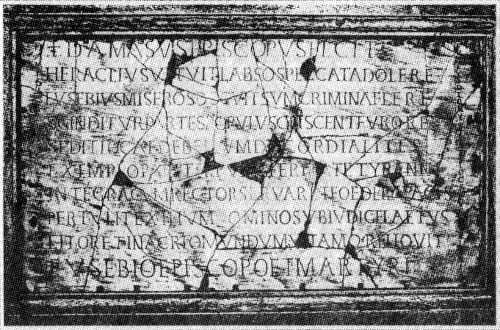 Катакомбы Калликста. Памятная надпись папы Дамаса в честь папы Евсевия. Копия конца VI в. (Baruffa, 1993)