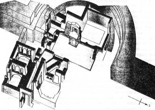 Раскопки в базилике св. Петра на Ватиканском холме. Аксонометрическая схема участка, раскопанного внутри апсиды базилики Константина. (Mancinelli, 1981)