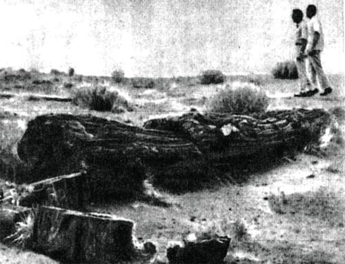 Фото 27. Огромные стволы триасовых хвойных деревьев, окаменевшие и превратившиеся в кварц. Национальный парк «Каменный лес», Аризона.