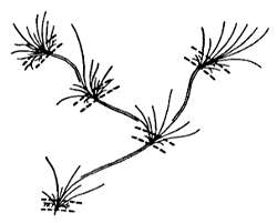Рис. 15.16. Схема чередования главных направлений эволюции — смена периодов аро- и аллогенеза в развитии любой крупной группы (по Б.С. Матвееву, 1967). Пунктир — периоды интенсивного аллогенеза в каждом пучке форм, двойные линии — арогенезы
