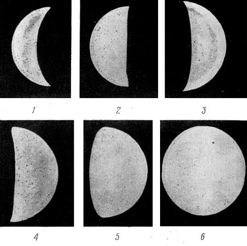 II. Зарисовки Венеры, выполненные пленами секции Меркурия и Венеры Британской астрономической ассоциации (воспроизводятся с разрешения Совета ассоциации). 1 — Каттермол, 19h45m 6 мая 1956 г., 61/2-дюймовый рефлектор, увеличение 230, наблюдатель; 2 — Абинери, 20h30m 17 апр.1956 г., 8-дюймовый рефлектор, увеличение 232, наблюдатель; 3— Хит, 7h10m 12 авг. 1956 г., 101/4-дюймовый рефлектор, увеличение 300, наблюдатель; 4 — Мур, 5h55m 26 авг. 1956 г., 121/2-дюймовый рефлектор, увеличение 360, наблюдатель; 5 — Хит, 7h45m 6 окт. 1956 г., 101/4-дюймовый рефлектор, увеличение 300, наблюдатель; 6 — Вайкс, 9h40m 6 янв. 1957 г., 6-дюймовый рефлектор, увеличение 225, наблюдатель.