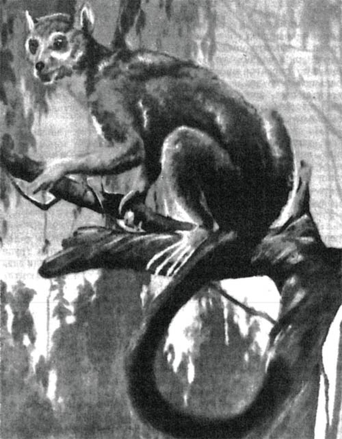 Фото 62. Один из ранних приматов, Notharctus, из эоценовых слоев в штате Вайоминг. Размерами он был приблизительно с молодую домашнюю кошку; это один из типичных очень ранних предков человека. Реконструкция.