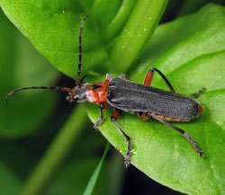 Переднеспинка у жуков рыжая. Черные или буро-черные мягкие надкрылья покрыты серым пушком. Передняя часть головы, основания усиков, грудной щит, за исключением черного пятна на переднем крае, а также бока и края брюшных колеи красно-желтые. Ноги сплошь черные. Размер тела варьирует от 11 до 15 мм. Личинки мягкотелки несколько уплощены, кажутся бархатными от покрова из тонких коротких волосков.