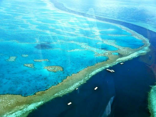 Барьерные рифы, коралловые сооружения. Расположены так же, как и береговые рифы, параллельно берегам, но отделены от них довольно широким каналом. Так, например, Большой Барьерный риф, который тянется вдоль восточного австралийского берега на протяжении 2400 километров, отделён от континента каналом от 50 до 100 километров шириной.